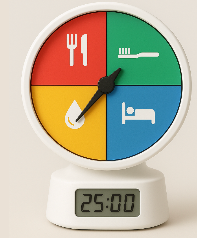 RustRitme biedt een slimme, gebruiksvriendelijke klok die duidelijk aangeeft welke taak wanneer start, hoelang deze duurt, en wat er daarna volgt. Doormiddel van visuele signalen, eenvoudige iconen en consistente timing creëert RustRitme rust, voorspelbaarheid en overzicht. Het helpt kinderen zelfstandig taken op te pakken, vermindert spanningsmomenten en ondersteunt ouders en professionals in het aanbrengen van een stabiele dagstructuur. Zo draagt RustRitme bij aan een meer ontspannen en harmonieuze dagelijkse routine.